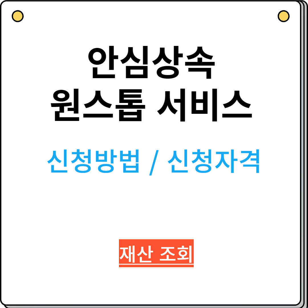 상속! 이제는 한 번의 신청으로 끝내세요. '안심상속 원스톱 서비스'는 사망자 또는 피후견인의 재산을 한 번의 신청으로 간편하게 확인할 수가 있는 대한민국 정부의 지원 서비스입니다. 과거에는, 금융기관 및 국세청 그리고 법원 등 여러 기관을 직접 방문해야 했던 상속 재산의 조회 과정을 이제는 온라인 또는 방문 한 번으로로 간편하게 처리할 수가 있게 되었습니다.