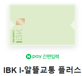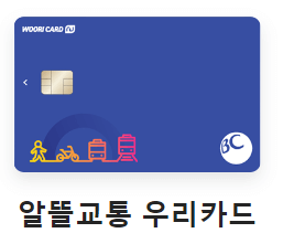 - 혜택 : 철도, 고속버스, 택시 5% 할인, 대중교통 최대 회당 300원 할인
